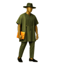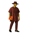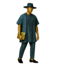 Experience modern minimalism with this sleek charcoal gray Agbada ensemble featuring contemporary drawstring detailing. This refined three-piece set combines traditional silhouette with modern design elements, perfect for the fashion-forward gentleman who appreciates functional style and understated sophistication. This contemporary outfit showcases a short-sleeved Agbada in sophisticated charcoal gray fabric with unique drawstring waist detail and functional chest pockets that add utilitarian edge to the traditional design. The round neckline with simple placket maintains classic sensibility while the modern gray tone and practical details offer contemporary appeal. The traditional wide-sleeve design creates impressive presence. Paired with matching charcoal straight-leg trousers and styled with a classic black fedora, this three-piece ensemble delivers versatile style for fashion-forward events, creative gatherings, contemporary cultural celebrations, upscale casual occasions, and modern weddings. The neutral charcoal works beautifully across seasons and occasions. Custom-tailored to your exact measurements for perfect fit.