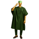 Experience rich sophistication with this elegant chocolate brown Agbada ensemble featuring stunning tonal concentric circle embroidery. This refined four-piece set combines deep earth tones with artistic detailing, perfect for the gentleman who appreciates grounded elegance and symbolic patterns. This distinguished outfit showcases a short-sleeved Agbada in luxurious chocolate brown fabric, adorned with beautiful tonal embroidery featuring concentric circles and infinity symbols that create mesmerizing visual movement down the chest. The brown-on-brown embroidery adds subtle texture and depth while maintaining sophisticated restraint. The traditional wide-sleeve design creates impressive presence. Complete with matching chocolate brown trousers, inner top, and a coordinating tan Kufi cap, this complete ensemble delivers warm elegance for autumn weddings, traditional ceremonies, cultural festivals, and occasions requiring earthy sophistication. The rich brown evokes stability, reliability, and timeless style. Custom-tailored to your exact measurements for perfect fit and comfort.