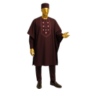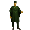 Experience celestial elegance with this sophisticated midnight blue Agbada featuring gold embroidered stars in a vertical constellation pattern. This refined four-piece set combines deep navy richness with symbolic star detailing, perfect for the gentleman who appreciates astronomical symbolism and understated luxury. This distinguished outfit showcases a short-sleeved Agbada in deep midnight blue fabric, beautifully adorned with seven gold embroidered stars arranged vertically within a shield-shaped panel on the chest, symbolizing guidance, destiny, and aspiration. The traditional wide-sleeve design creates regal presence. Complete with matching midnight blue trousers, inner long-sleeved top, and a coordinating navy Kufi cap, this complete ensemble delivers timeless sophistication for evening weddings, formal ceremonies, starlit outdoor events, and occasions requiring distinguished elegance. The midnight blue conveys depth, wisdom, and authority. Custom-tailored to your exact measurements.