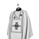 Experience architectural elegance with this stunning cream Agbada featuring bold black geometric embroidery in a card suit-inspired pattern. This luxurious piece combines pristine neutral tones with striking graphic design, perfect for the gentleman who appreciates artistic symmetry and sophisticated contrast. This impressive Agbada showcases soft cream fabric elevated by dramatic black embroidered geometric designs arranged in rectangular panels across the chest and body. The pattern features circular floral medallions arranged like playing card suits, creating a unique, contemporary aesthetic. Diagonal piping lines frame the design elements, adding structure and visual movement. The traditional wide-sleeve design creates commanding presence. This statement piece works beautifully for high-fashion events, avant-garde weddings, creative industry gatherings, and occasions where you want to blend traditional silhouette with modern artistic expression. The cream and black combination offers timeless sophistication with contemporary edge. Custom-tailored to your exact measurements for impeccable fit.