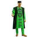 Make a bold, regal statement with this striking layered ensemble combining rich golden yellow with deep forest green. This luxurious four-piece set features dramatic color contrast and intricate embroidery, perfect for the gentleman who embraces bold color combinations and commanding presence. This spectacular outfit showcases a long-sleeved golden yellow Kaftan as the base layer, adorned with elaborate black geometric embroidery running vertically down the chest featuring lattice patterns and circular Adinkra symbols. Over this sits a sleeveless forest green outer Agbada that creates stunning color contrast and adds dramatic layering. The combination of warm gold and cool green creates visual depth and richness. Complete with matching golden yellow trousers and a coordinating black Kufi cap, this complete ensemble delivers powerful style for high-profile weddings, chieftaincy installations, cultural showcases, royal ceremonies, and prestigious gatherings where you want to make an unforgettable impression. The gold symbolizes prosperity while the green represents growth and vitality. Custom-tailored to your exact measurements for perfect layered fit.