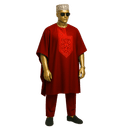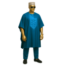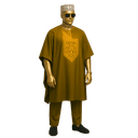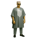 Step into understated majesty with this flowing charcoal grey Agbada featuring a stunning shield-shaped embroidered chest panel. The tonal embroidery creates subtle dimension through intricate geometric patterns inspired by ancient Nigerian symbols of protection, unity, and strength. The short-sleeved design with dramatic wide silhouette ensures you make an entrance worthy of the occasion, while the matching embroidered cap adds that essential finishing touch. This three-piece ensemble—Agbada top, tailored trousers, and cap—represents the perfect balance between bold statement and refined elegance. Ideal for the modern man who appreciates cultural authenticity without sacrificing contemporary style, this set transitions beautifully across various formal occasions. From traditional wedding ceremonies to community leadership events, religious celebrations to milestone anniversaries, this Agbada commands respect and admiration. The neutral charcoal palette offers versatility—pair with brown leather accessories for warmth or black for sleek sophistication. The breathable construction ensures comfort even during extended celebrations, while the expert craftsmanship guarantees this piece will remain a wardrobe cornerstone for years to come.