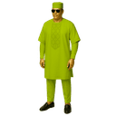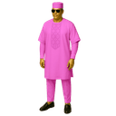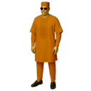 Embrace pristine elegance with this all-white ensemble that radiates sophistication and cultural pride. The short-sleeved tunic features delicate tonal embroidery forming geometric patterns down the chest, creating subtle texture and visual interest against the crisp ivory fabric. The wide, flowing silhouette offers comfort and commanding presence, while the matching trousers and embroidered cap complete this three-piece set with refined cohesion. This is traditional wear reimagined for the contemporary African gentleman who values both heritage and modern aesthetics. White holds deep significance across Nigerian cultures—representing purity, spiritual clarity, new beginnings, and celebration. This makes the ensemble particularly appropriate for religious ceremonies, naming celebrations, milestone birthdays, and joyous family gatherings. The breathable fabric ensures comfort during outdoor ceremonies and extended celebrations, while the expert tailoring maintains a polished appearance throughout the day. Style with brown leather accessories for warmth or maintain the monochromatic elegance with white leather. This versatile set deserves a place in every culturally conscious wardrobe.